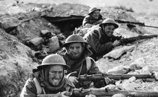 British Infantrymen in position in a shallow trench near Bardia, a Libyan Port, 1941