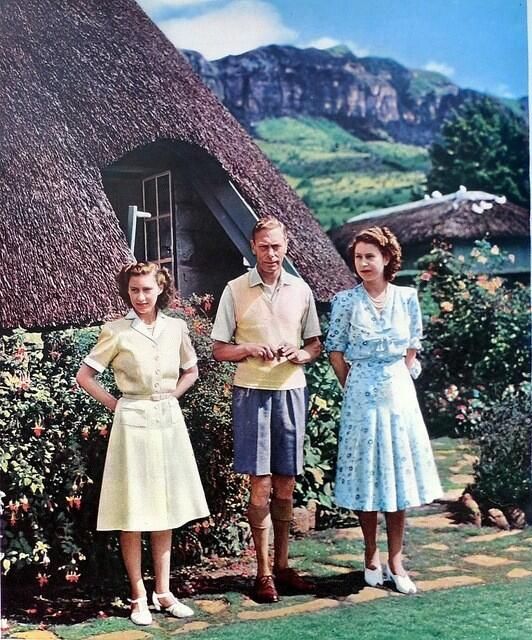 King George VI with Margaret & Elizabeth – 1947 (Photo colorized)